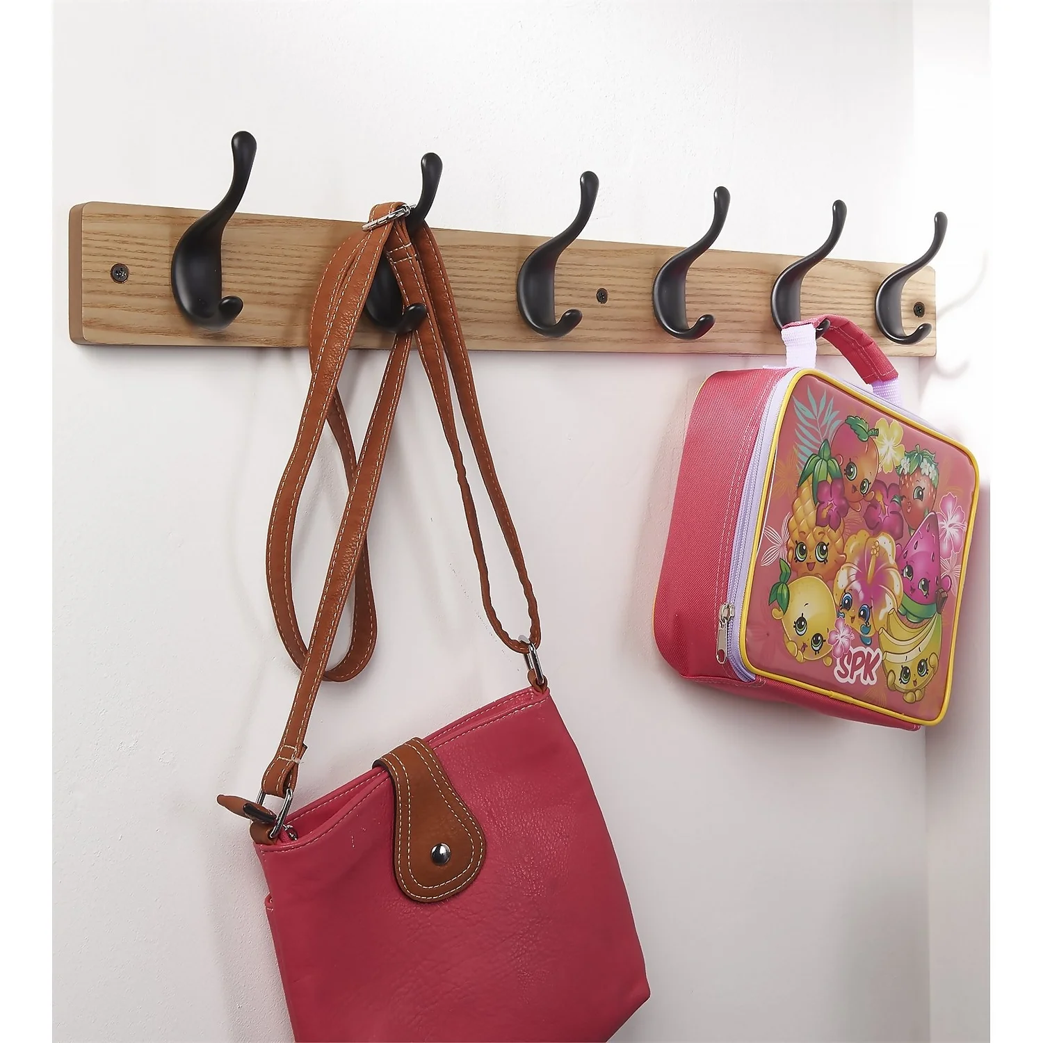 - 6 stylish mat black double hooks provide ample hanging space for smaller areas.