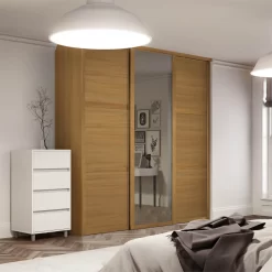 Shaker 3 Door Sliding Wardrobe Kit Oak Panel / Mirror With Oak Frame (W)2136 X (H)2260mm