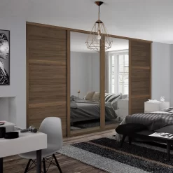 Shaker 4 Door Sliding Wardrobe Kit Walnut Panel / Mirror With Walnut Frame (W)3506 X (H)2260mm