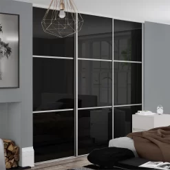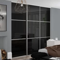 Linear Sliding Wardrobe Door 3 Panel Arctic White Glass With Silver Frame (W)914mm