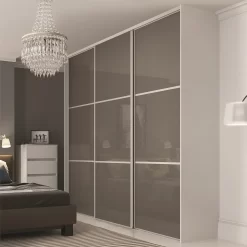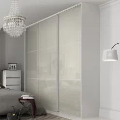 Linear Sliding Wardrobe Door 3 Panel Arctic White Glass With Silver Frame (W)610mm