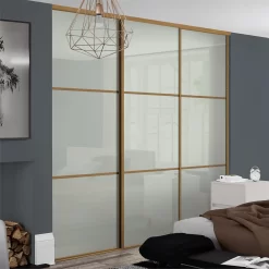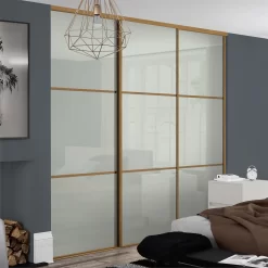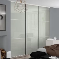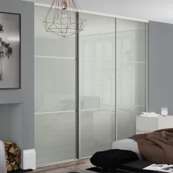 Linear Sliding Wardrobe Door 3 Panel Arctic White Glass With Silver Frame (W)762mm