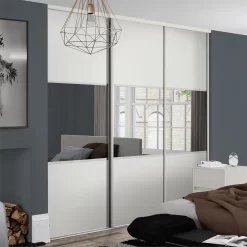 Linear Sliding Wardrobe Door 3 Panel White With White Frame (W)610mm