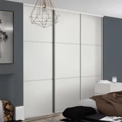 Linear Sliding Wardrobe Door 3 Panel White With White Frame (W)762mm