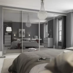 Duo Sliding Wardrobe Door Mirror With Aluminium Frame (W)762mm