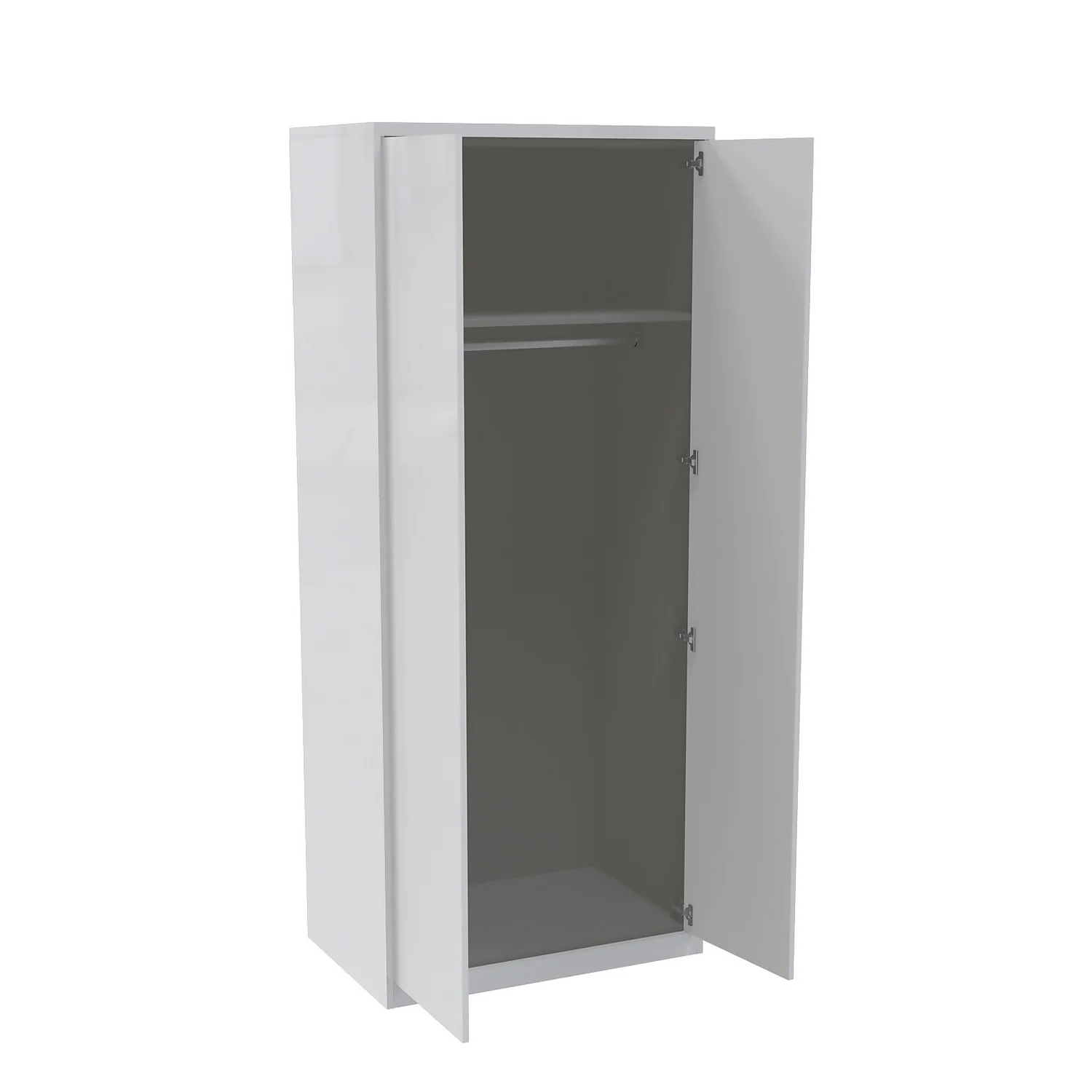 - A fitted look is achieved by using clad on panels, plinth and cornice which are all included with this wardrobe. All the elements that clad the internal grey carcass (clad on panels, plinth and cornice) are a perfect match to the gloss white handleless door
