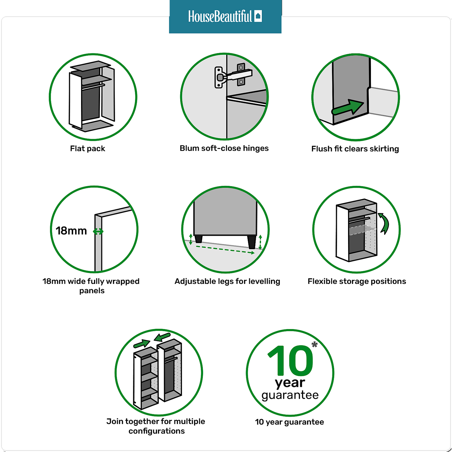 - The wardrobe is supplied with an internal shelf and hanging rail. The carcass features adjustable feet for levelling on uneven floors and is supplied with the instructions and components to secure to the wall (wall plugs not supplied). A unique feature of the clad-on panels is the pre-cut notch to allow clearance of most skirting boards, allowing an easy flush fit