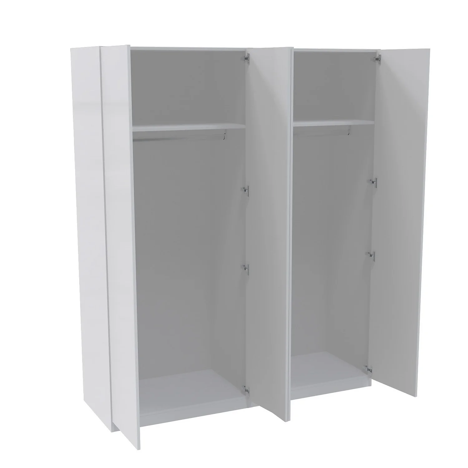 The House Beautiful range is exclusive to Homebase and offers a selection of different finishes and storage configurations to suit your needs. With a range of carcass colours and contrasting door designs, you can select the look to fit your bedroom aesthetic. This four door wardrobe (2 x double units) features a white carcass and beautiful gloss white slab doors for a modern sleek look. The wardrobe features premium soft close clip-on Blum hinges, two shelves and two hanging rails. You can customise your wardrobe with our additional internal storage options (available separately) including internal drawers, shelves, dividing shelves and extra hanging rails. Choose your handles from our range of both traditional and modern to suit your desired look.