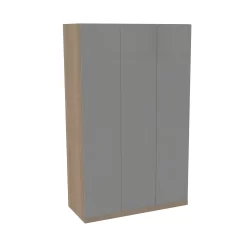 The House Beautiful range is exclusive to Homebase and offers a selection of different finishes and storage configurations to suit your needs. With a range of carcass colours and contrasting door designs, you can select the look to fit your bedroom aesthetic. This triple wardrobe (one double and one single) features an oak effect carcass and beautiful gloss grey slab doors for a modern sleek look. The wardrobe features premium soft close clip-on Blum hinges, two shelves and two hanging rails. You can customise your wardrobe with our additional internal storage options (available separately) including internal drawers, shelves, dividing shelves and extra hanging rails. Choose your handles from our range of both traditional and modern to suit your desired look.
