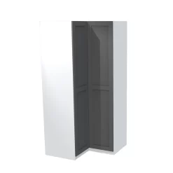 The House Beautiful range is exclusive to Homebase and offers a selection of different finishes and storage configurations to suit your needs. With a range of carcass colours and contrasting door designs, you can select the look to fit your bedroom aesthetic. This corner wardrobe features a white carcass and beautiful shaker doors finished in a luxurious matt carbon grey. The wardrobe features premium soft close clip-on Blum hinges, five shelves and a hanging rail. You can customise your wardrobe with our additional internal storage options (available separately) including internal drawers, shelves, dividing shelves and extra hanging rails. Choose your handles from our range of both traditional and modern to suit your desired look.