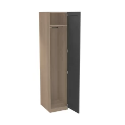 - The wardrobe is supplied with an internal shelf and hanging rail. The carcass features adjustable feet for levelling on uneven floors and is supplied with the instructions and components to secure to the wall (wall plugs not supplied)