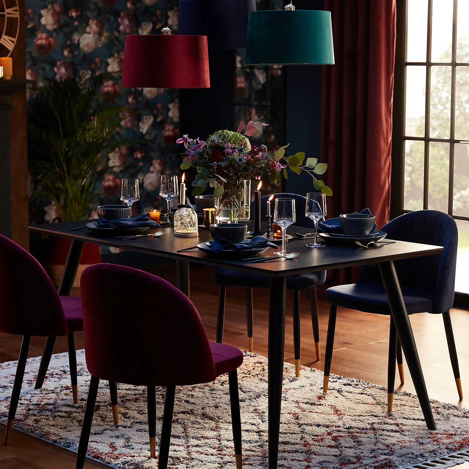 Go glam in the dining room with Illona. Full of charisma, the Illona dining table offers a contemporary chic style for your home. It boasts a wonderful black ash top with a Swiss edge chamfer to give this table edge. This combined with its striking splayed legs and dramatic black finish give Illona its bold personality. Host a lavish dinner party or enjoy evening drinks with friends at this sleek number.