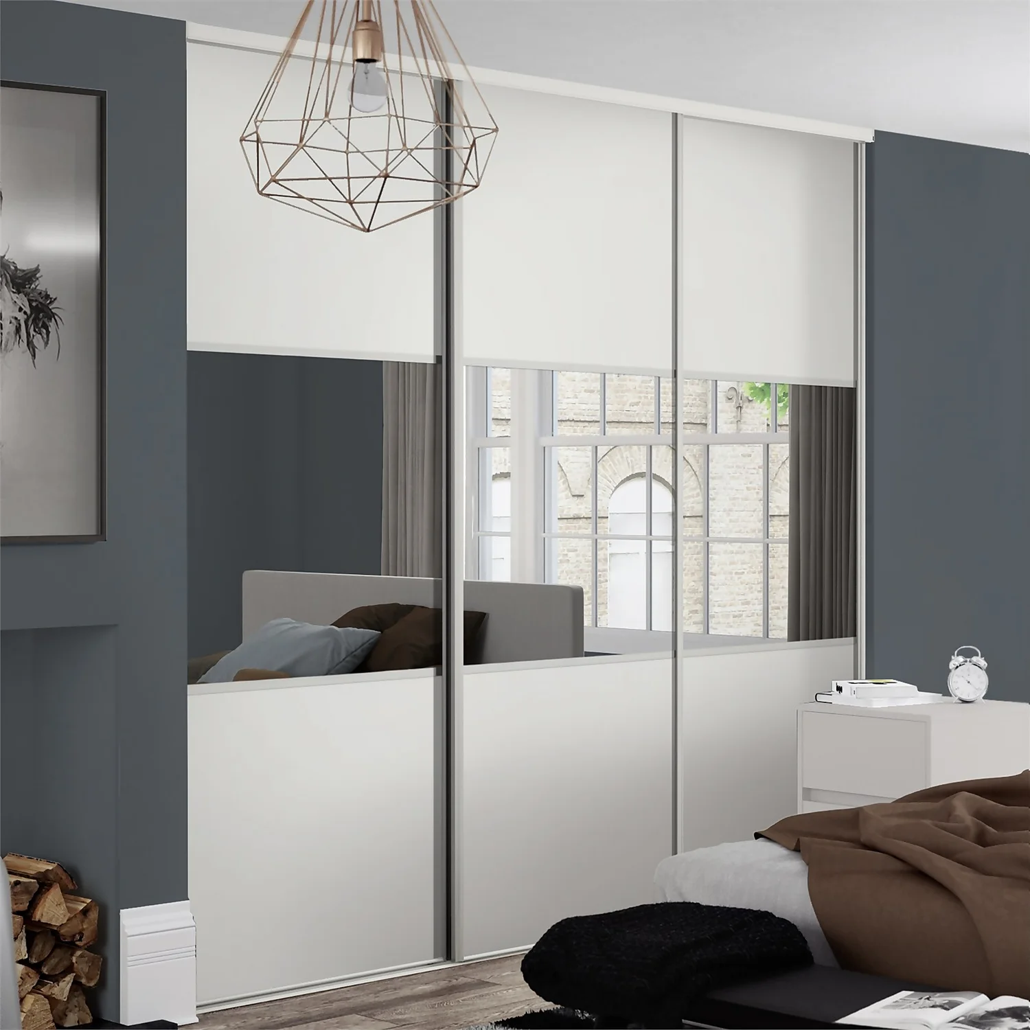 Linear Sliding Wardrobe Door 3 Panel White / Mirror With White Frame (W)610mm
